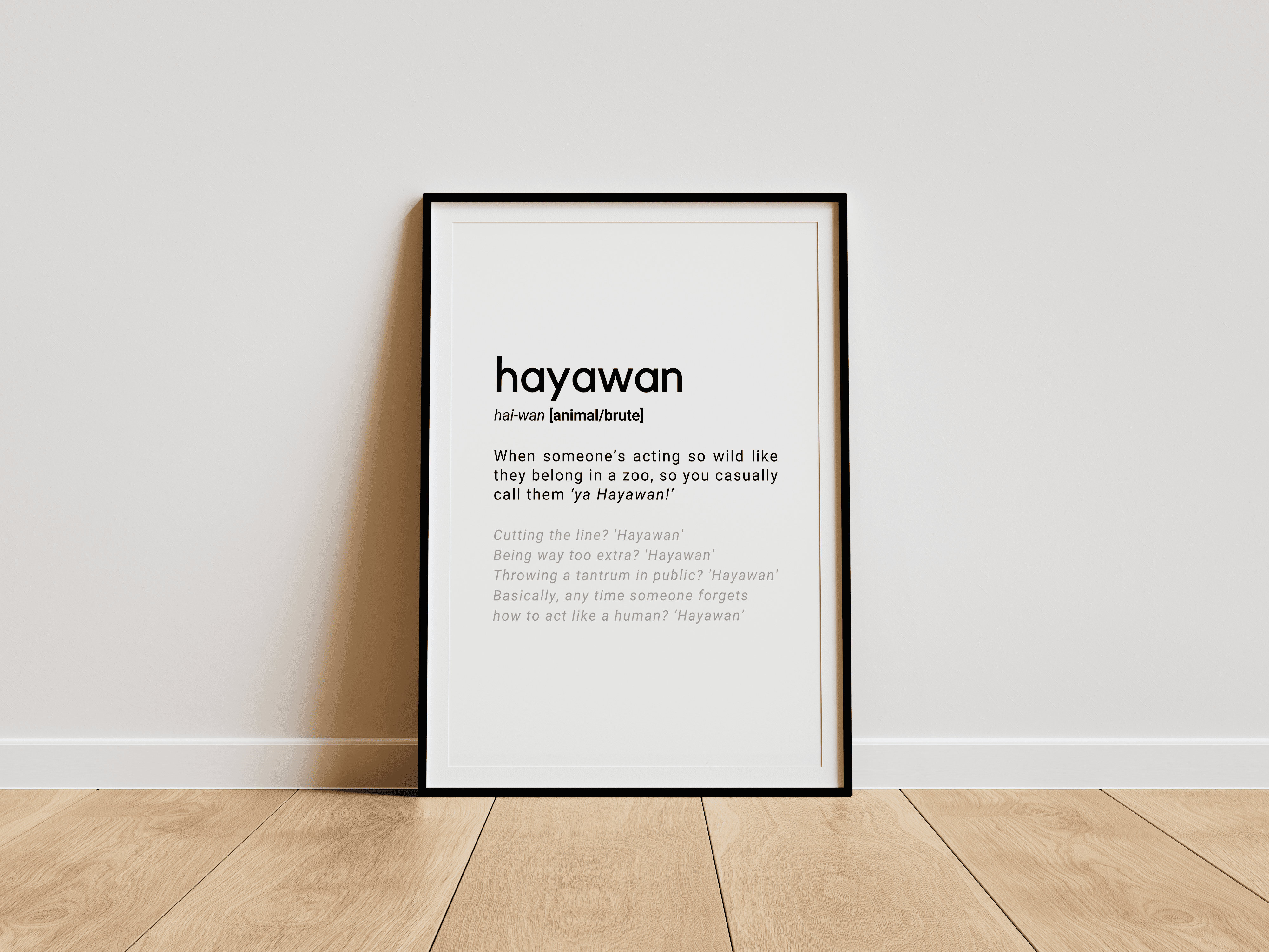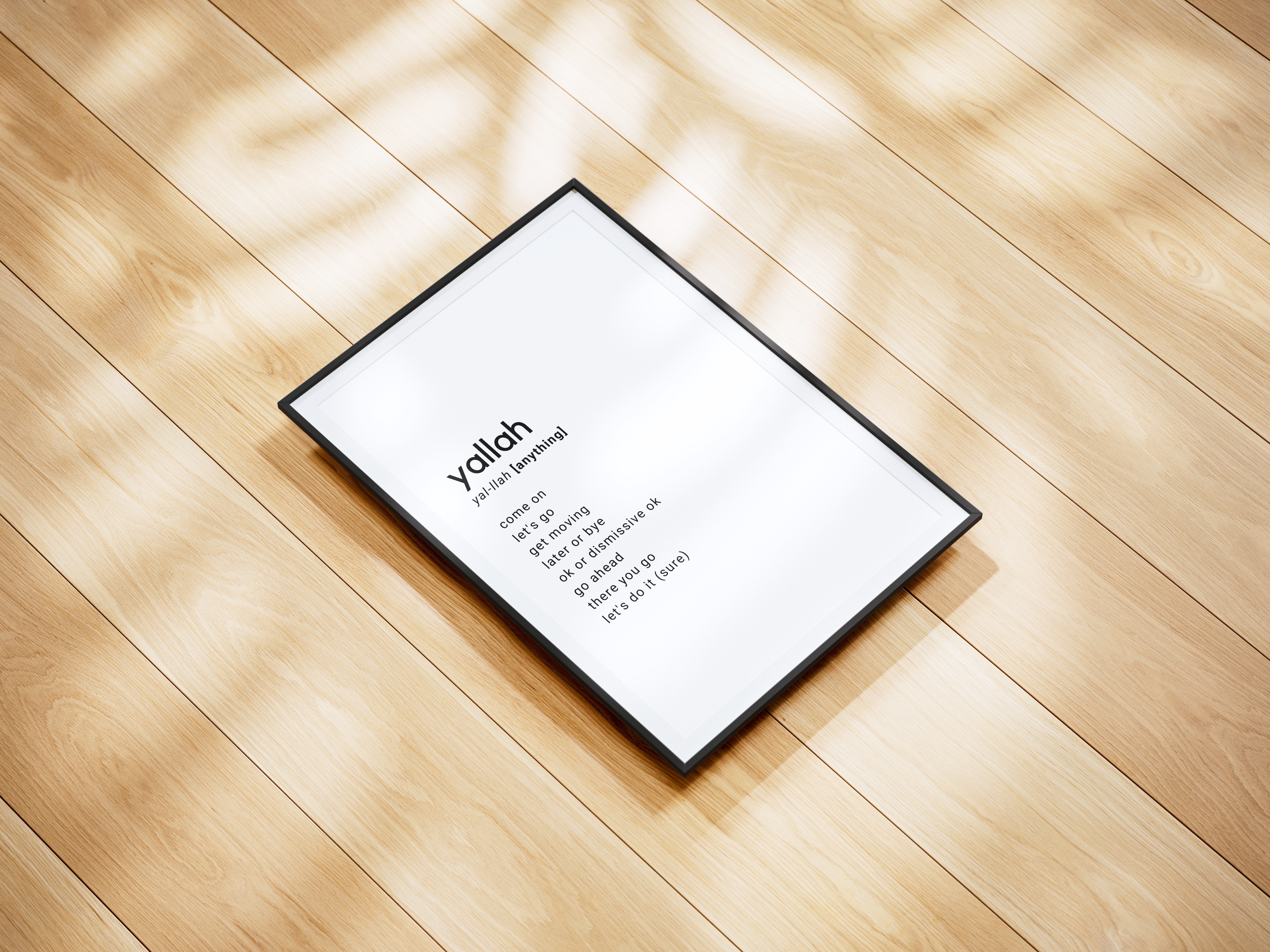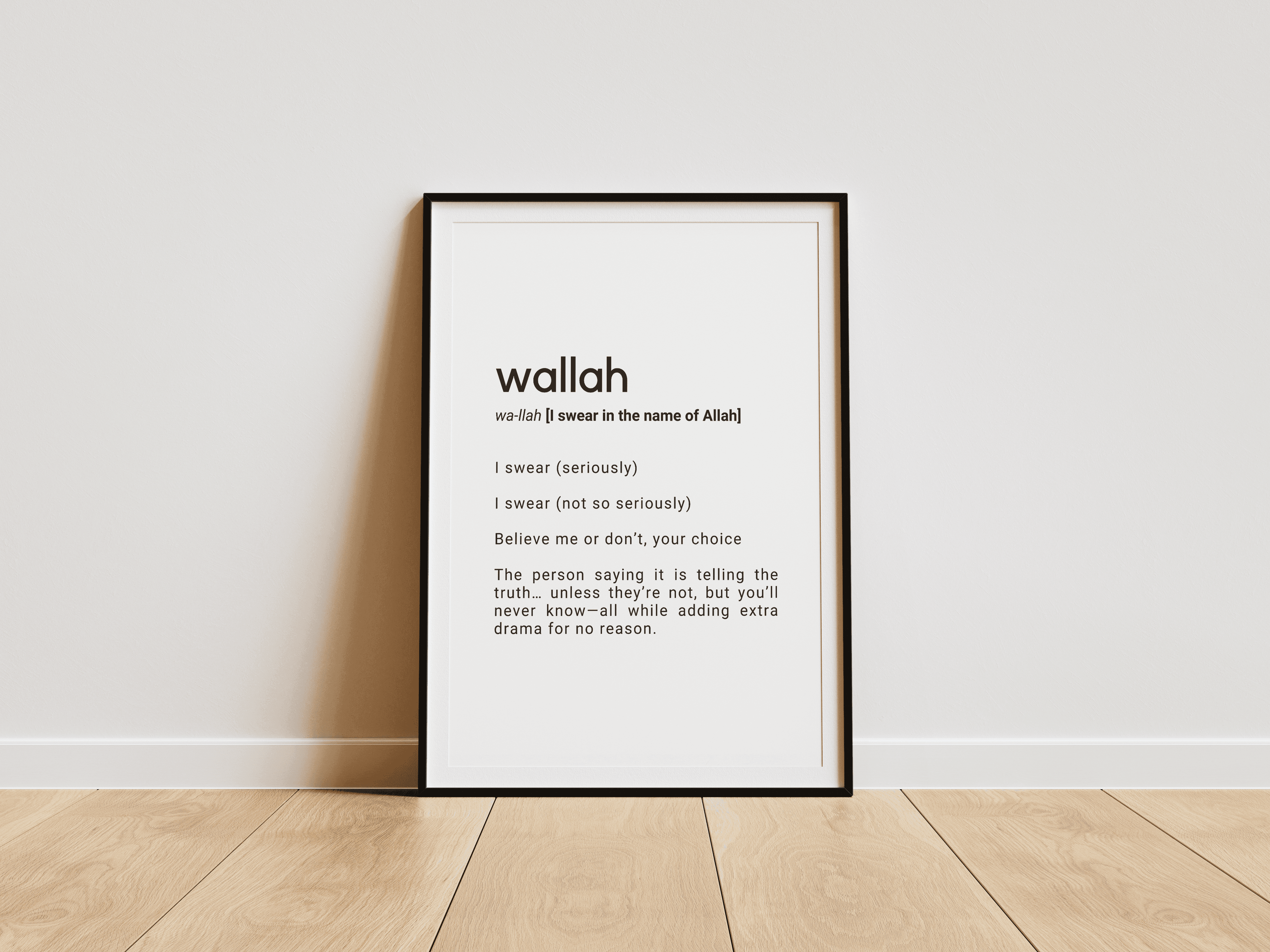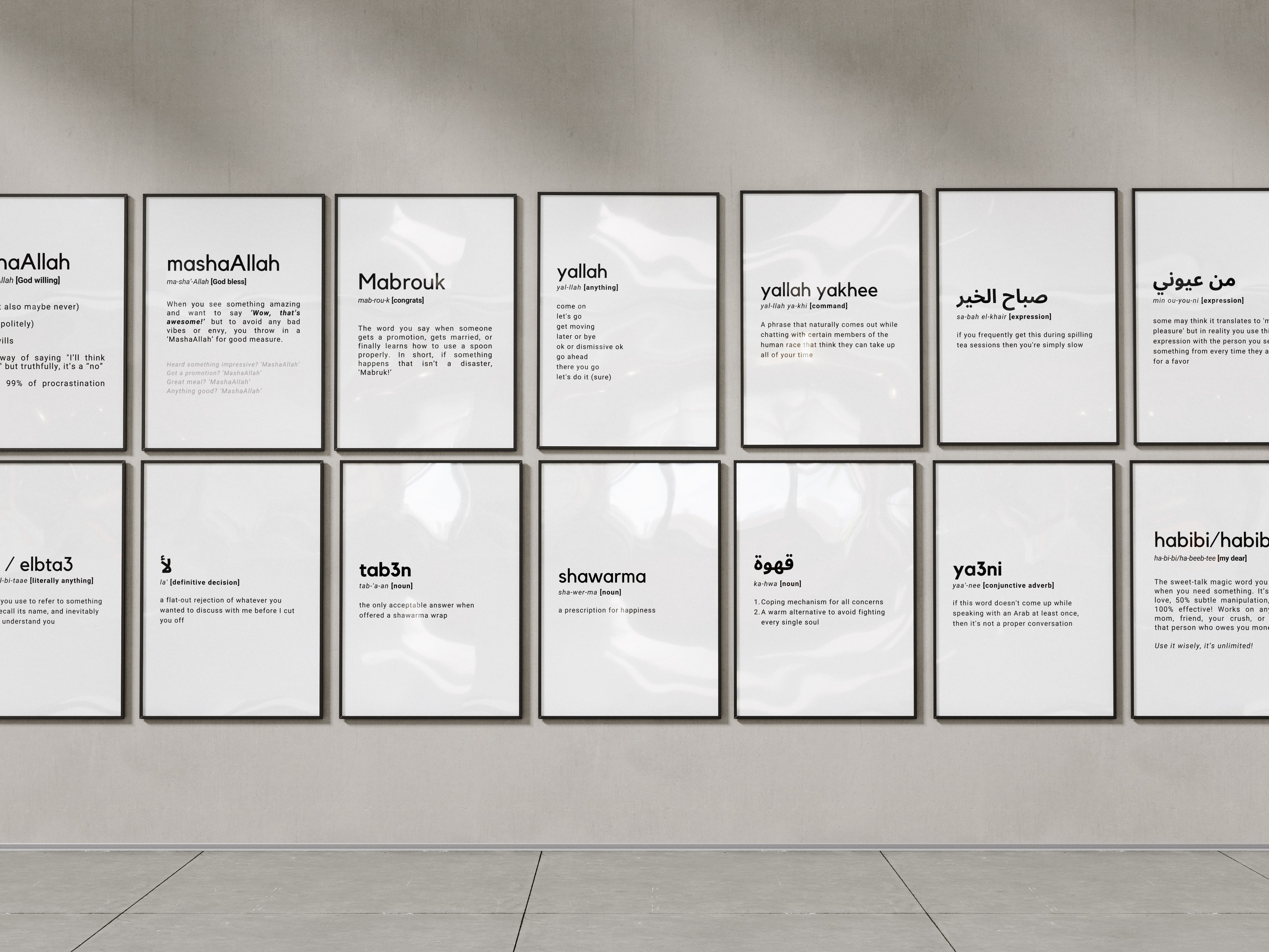 This is my unique collection of humorous Definition Prints, inspired by Arabic words that everyone uses and instantly recognizes. These are the kinds of expressions you hear all the time, on everyone’s tongue, and they carry cultural meaning, humor, and attitude that don’t really translate word for word.