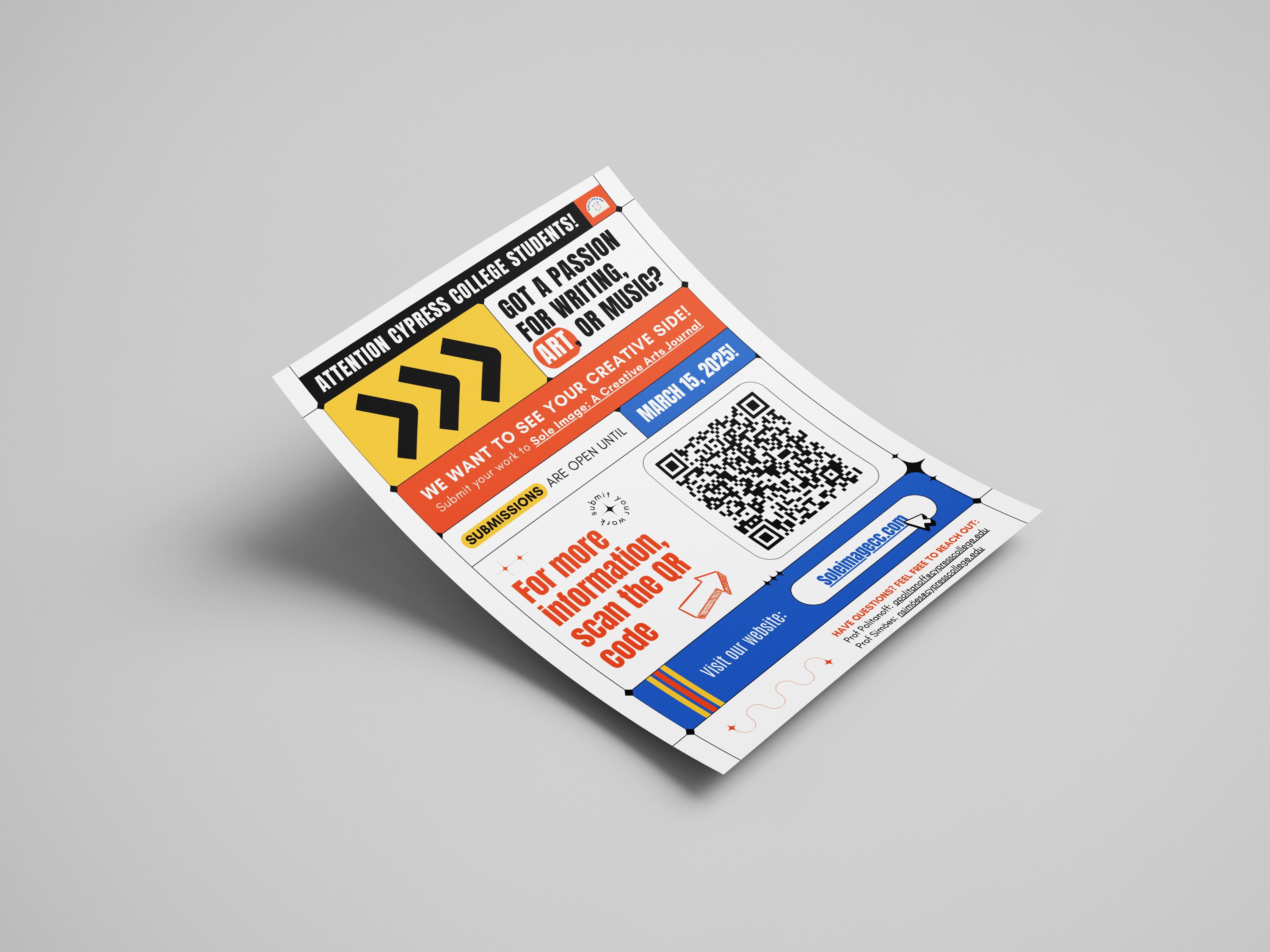 Redesigned the online presence and visual identity for Sole Image, Cypress College’s creative arts journal. The internship work consisted of creating a new website, logo, flyer, and printed booklet, with the objective of better spotlighting student work and reaching both digital and offline audiences.